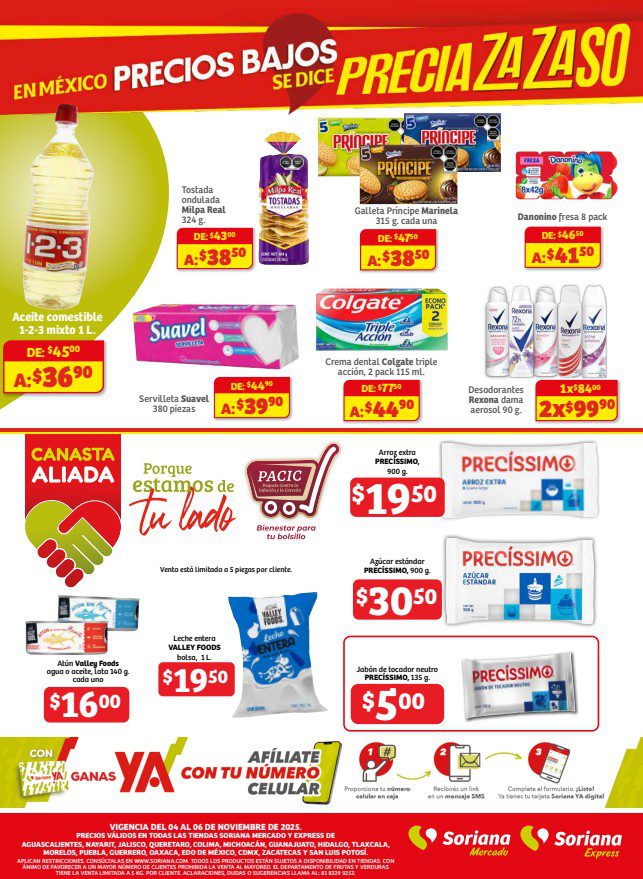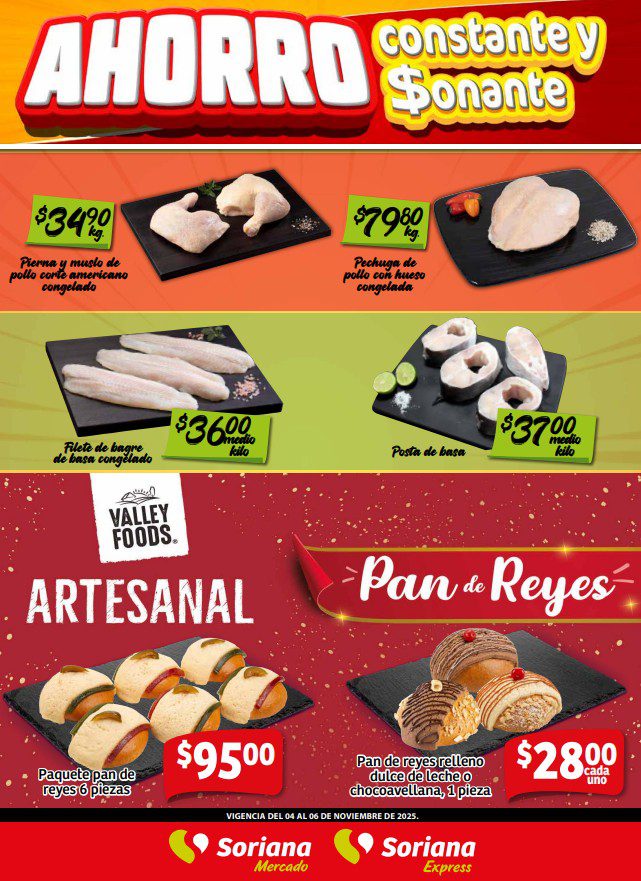 Acabo de ver las ofertas en Frutas, Verduras y Carnes del folleto de Media Semana Los Frescos del Mandado de las tiendas de autoservicio Soriana Mercado y Express que son válidas del 04 al 06 de noviembre de 2025; en el que encontrarás Precios especiales; la promoción es válida en sucursales participantes, aplican en artículos seleccionados y algunas de sus ofertas son estas (al final te dejo el folleto completo):