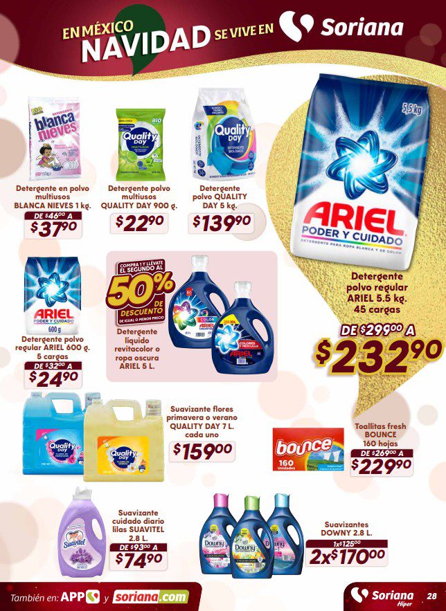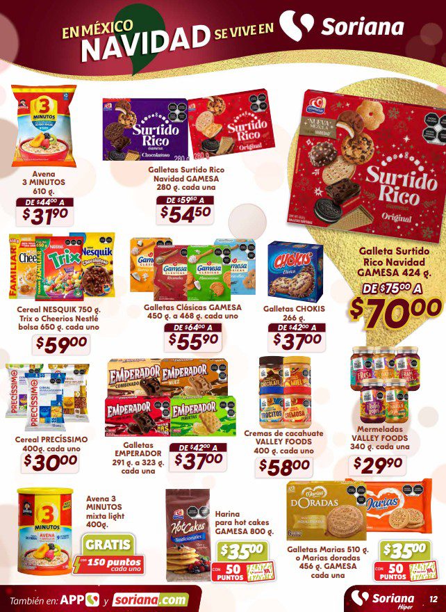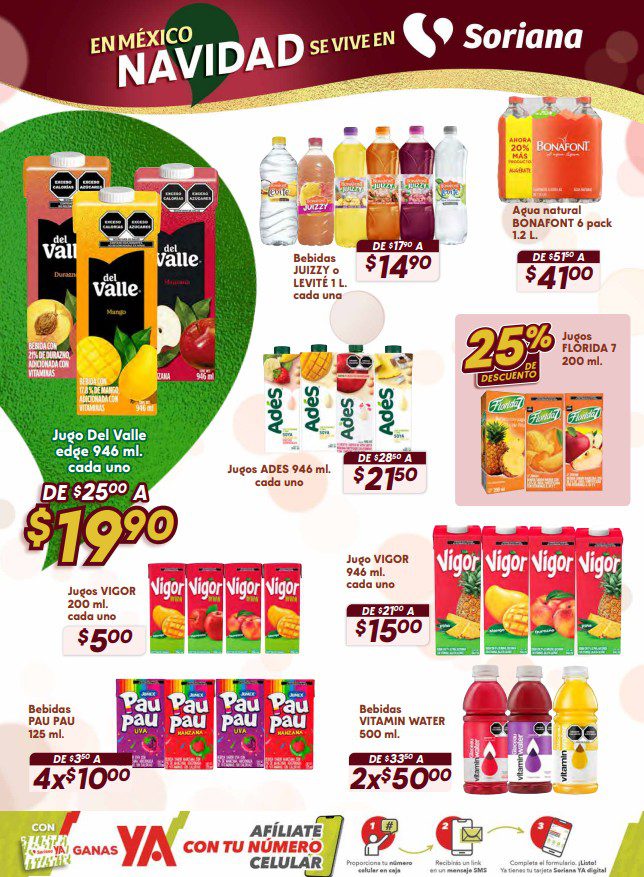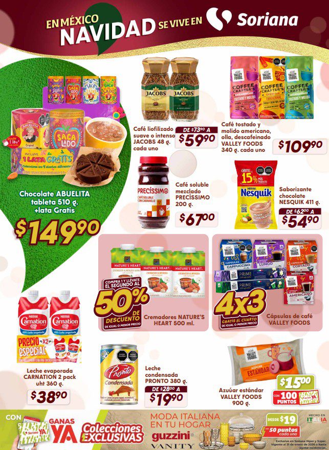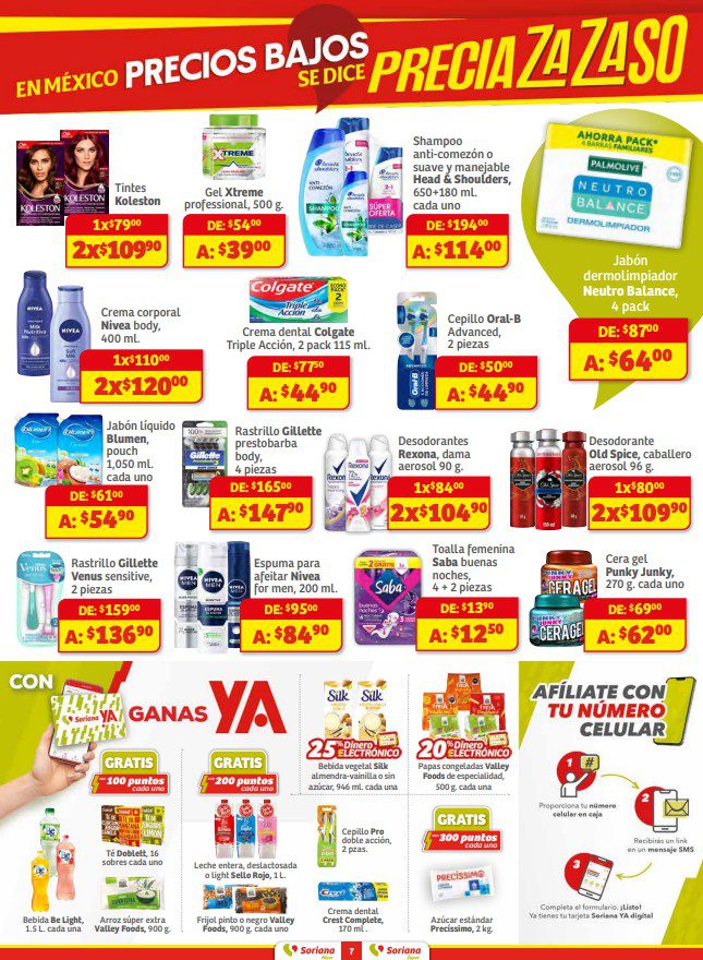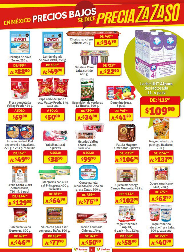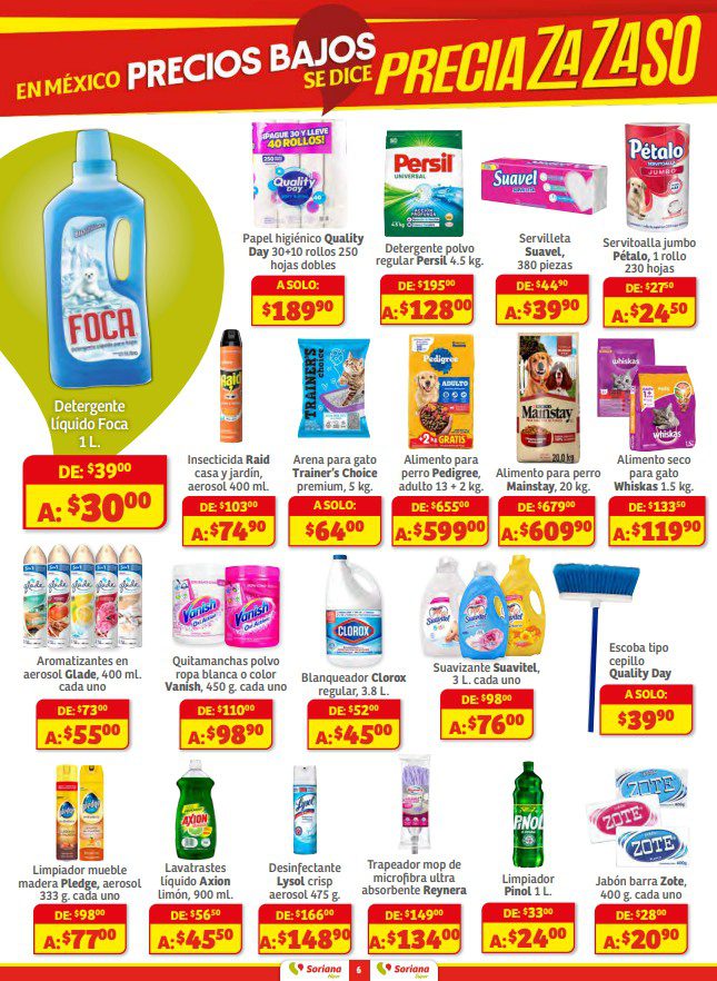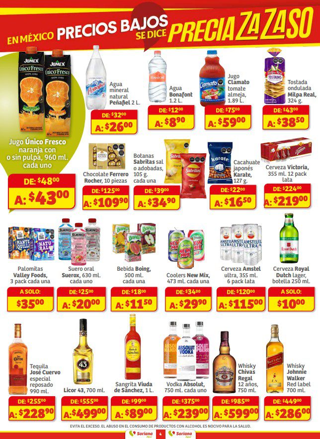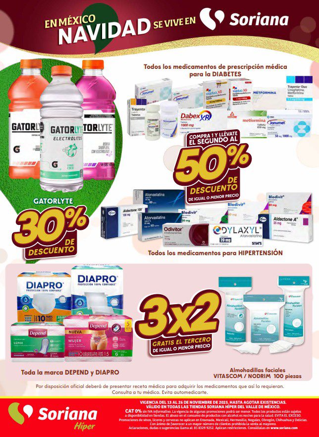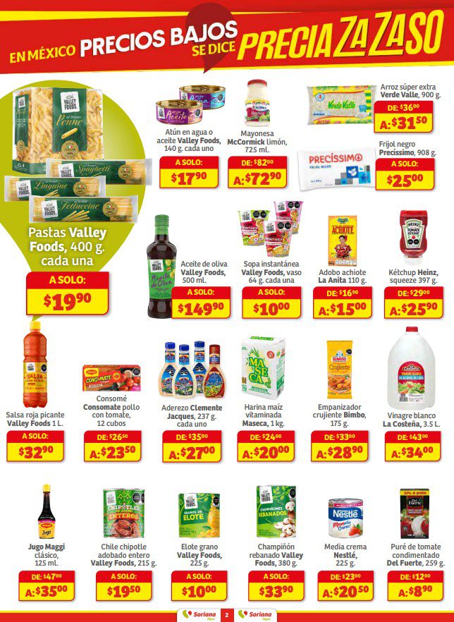 Ya salió el folleto En México, Precios Bajos se dice Preciazazaso de Soriana Híper y Súper, que contiene sus ofertas válidas del 13 al 26 de noviembre de 2025 o agotar existencias, y en el que te devolverán el IVA en Dinero electrónico Soriana Ya (en productos participantes), además encontrarás Preciazazasos, 3×2, 4×3, 5×4 (el producto GRATIS será el de igual o menor precio), Beneficios con tu tarjeta Soriana Ya (como Producto Gratis usando una determinada cantidad de Puntos), en la compra de 1 te llevas el 2º con un 50% de descuento (en productos de igual o menor precio), Ahorros especiales en la compra de determinadas unidades, Pa’Quete Ahorres (con Producto GRATIS) en la compra de mercancía participante, hasta un 30% de descuento y Precios especiales; las ofertas son válidas en artículos seleccionados y aplican en su tienda en línea soriana.com y en sus sucursales físicas del Valle de México (los precios y productos participantes pueden variar ligeramente en otras localidades).