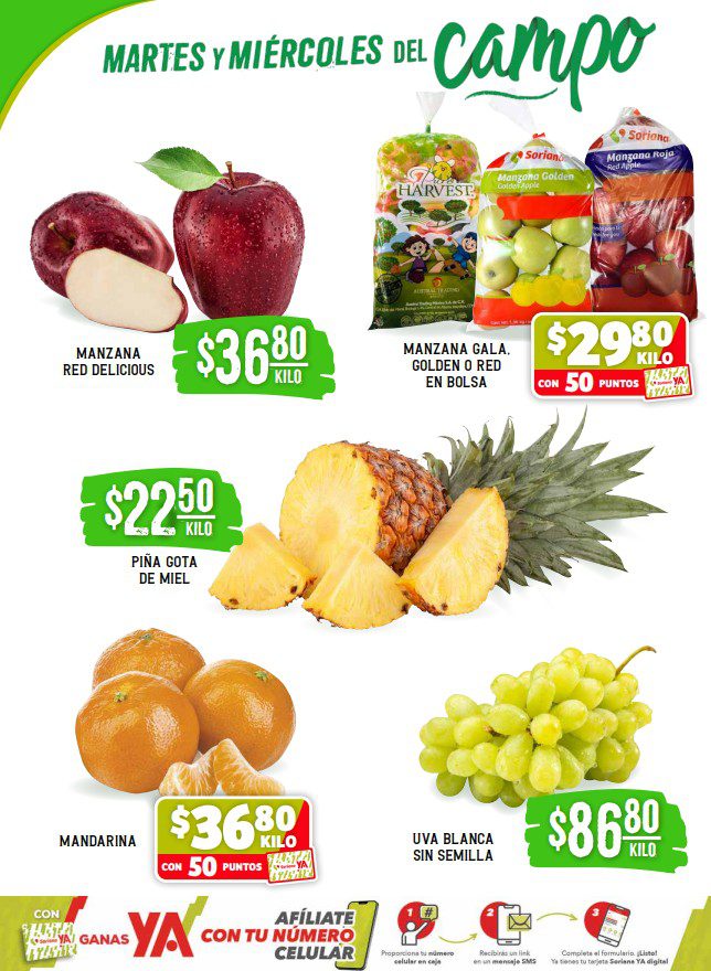 - Mandarina a $36.80 el kilo con 50 Puntos Soriana Ya.