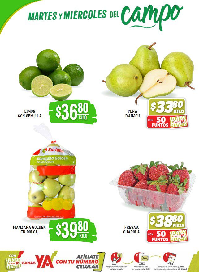 • Fresa a $38.80 la charola con 50 Puntos Soriana Ya.