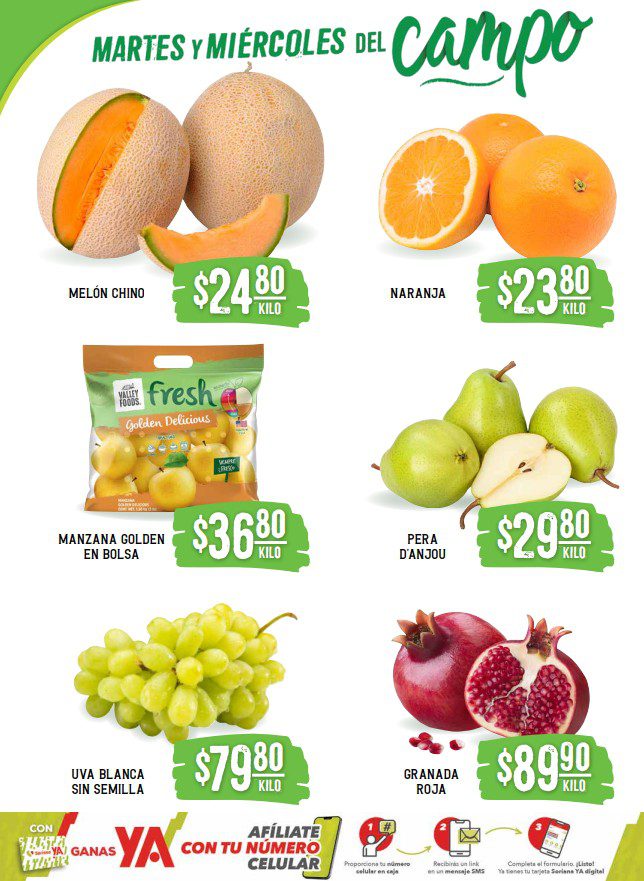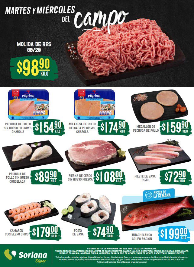 Hace un momento vi que Soriana Súper publicó su folleto Martes y Miércoles del Campo, que contiene sus ofertas válidas el martes 25 y miércoles 26 de noviembre de 2025 o hasta agotar existencias, entre las que encontrarás Precios especiales, sus ofertas son válidas en artículos seleccionados, aplican en sus sucursales físicas participantes y las siguientes son las que corresponden a Frutas, Verduras y Carnes (al final te comparto el folleto completo):