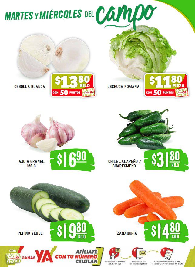 - Cebolla blanca a $13.80 el kilo con 50 Puntos Soriana Ya.