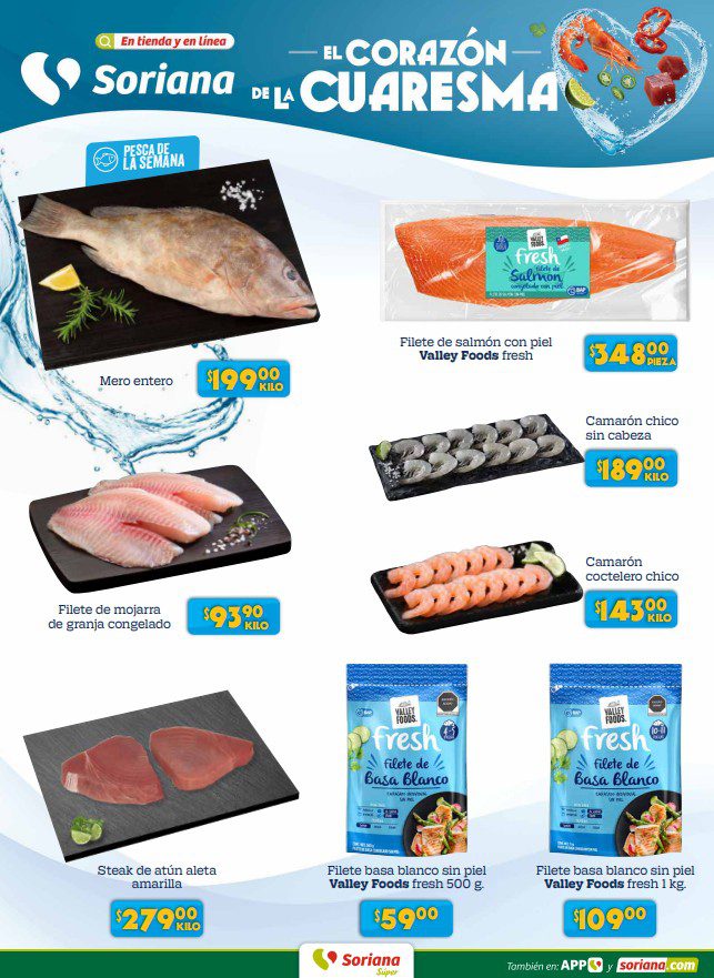 - Filete de Salmón con piel Valley Foods Fresh a $348.00 el empaque.