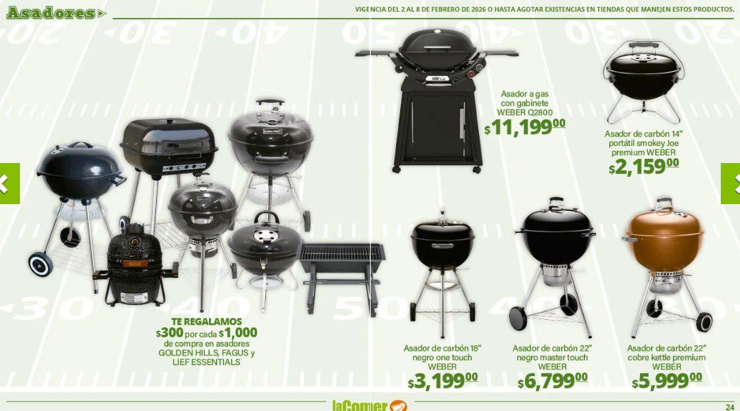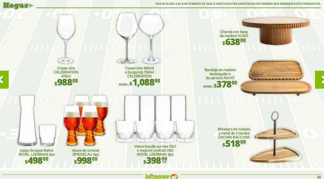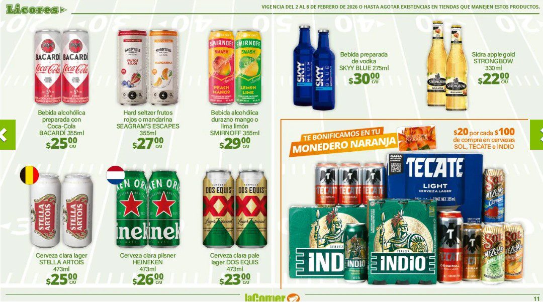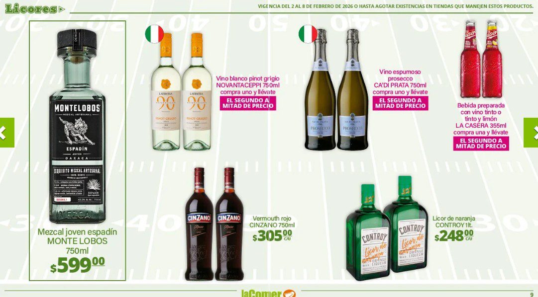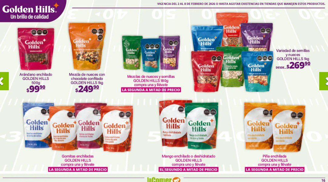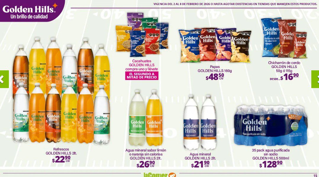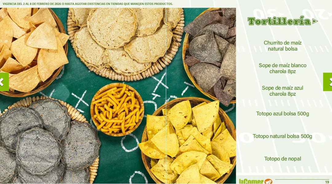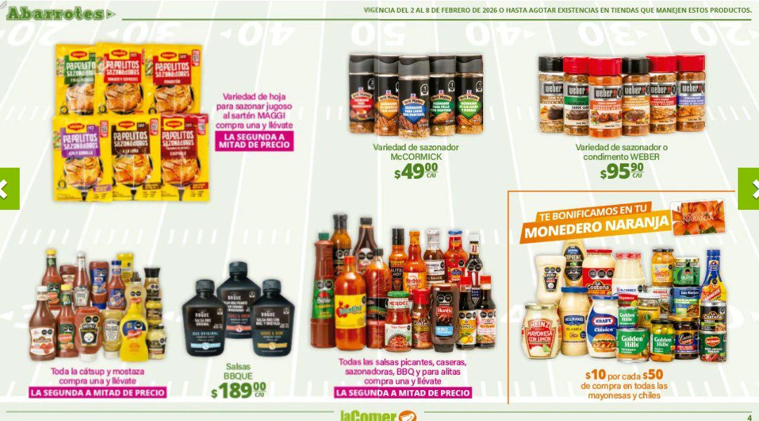 Ya salio el folleto por el Super Bowl de La Comer, que contiene sus ofertas válidas del 02 al 08 de febrero de 2026 o hasta agotar existencias y en el que encontrarás que, en la compra de 1 te llevas el Segundo a Mitad de precio, Ofertas especiales en la compra de importes determinados, Bonificaciones en tu Monedero Naranja en la compra de determinados importes, Descuentos especiales en compras por determinadas unidades, Precios especiales en productos seleccionados y Ofertas especiales en sus líneas de productos Golden Hills; las ofertas son válidas en su tienda en línea: www.lacomer.com.mx/ y en sus sucursales físicas y este es su folleto: