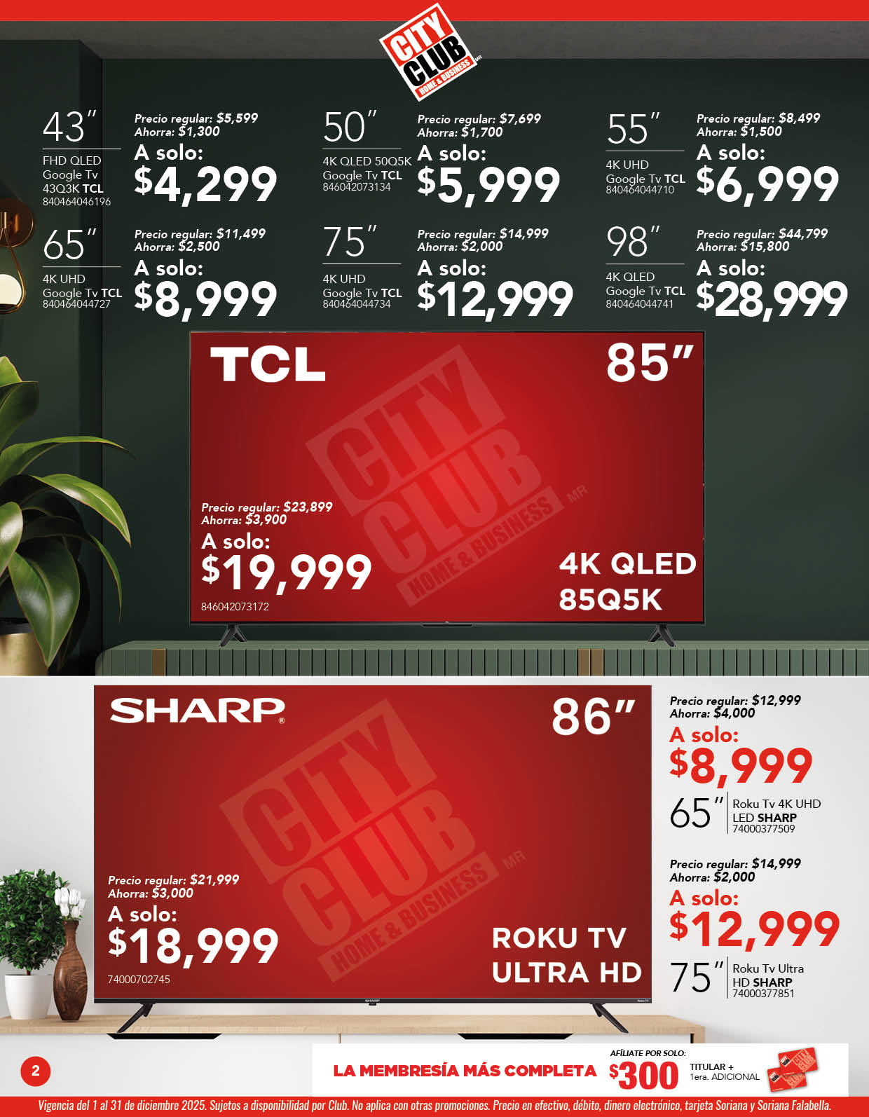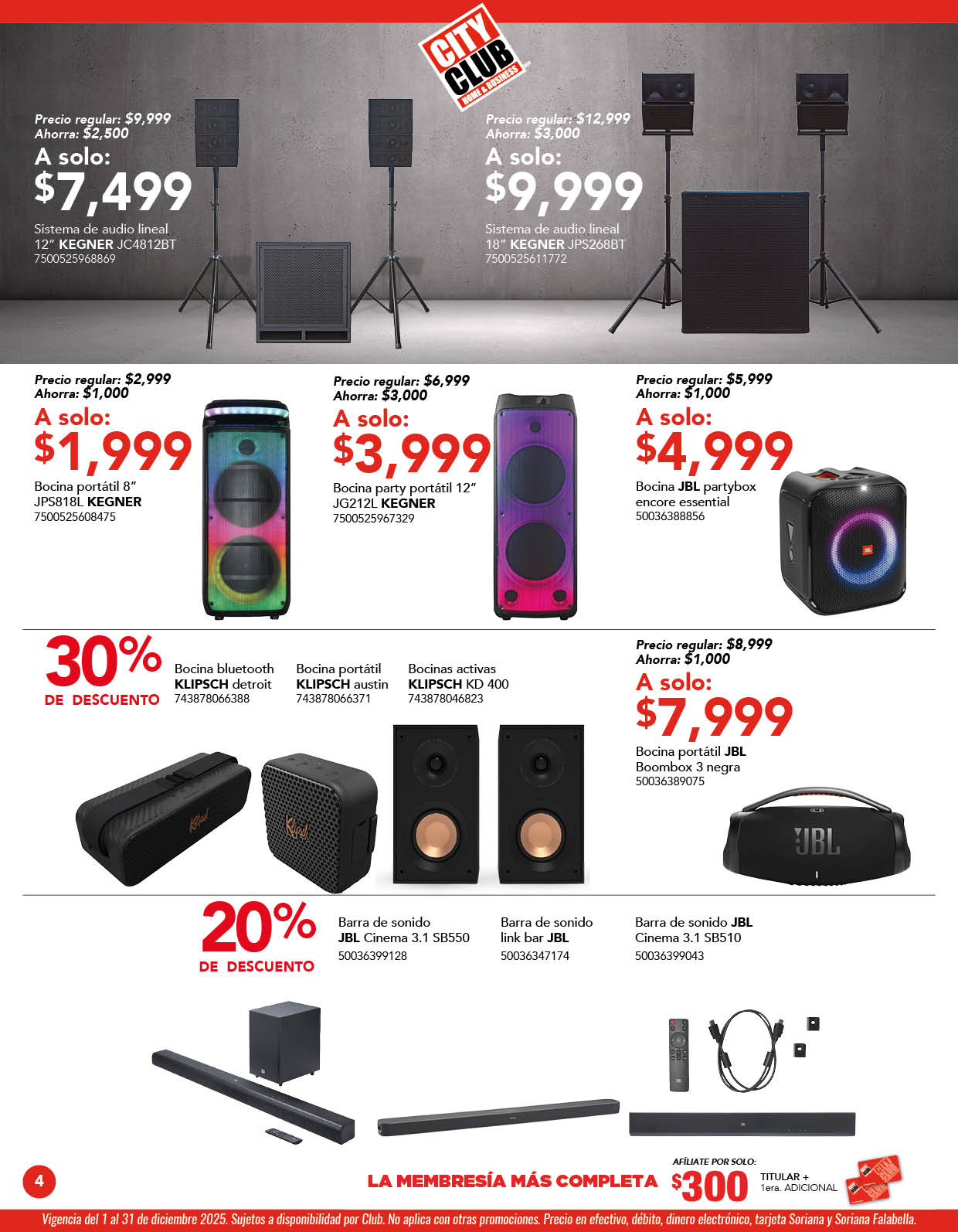 Los clubes de precios City Club publicaron su folleto Una Navidad Inolvidable, que contiene sus ofertas válidas del 31 de octubre al 31 de diciembre de 2025 y en el que encontrarás 2×1, 4×3, la Segunda unidad con un 50% de descuento, Ahorros en la compra de determinadas unidades, hasta un 50% de descuento y Precios especiales; las ofertas son válidas en su tienda en línea www.cityclub.com.mx y en sus sucursales físicas, aplican en mercancía seleccionada.