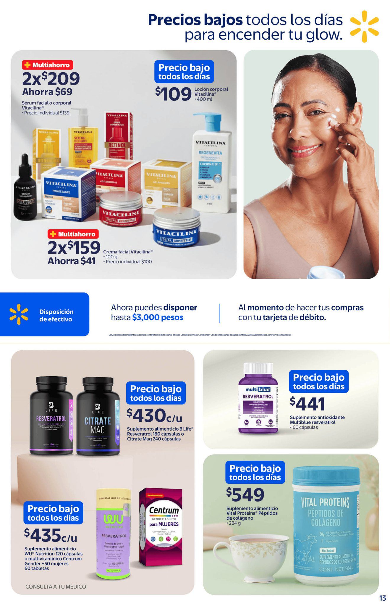 Las tiendas de autoservicio Walmart publicaron su folleto Glow Up K Beauty, a Precios Bajos todos los días, que contiene sus ofertas válidas del 11 de febrero al 21 de abril de 2026, en el que encontrarás Precios Bajos (Precios especiales todos los días), Multiahorros (Ahorros en la compra de 2 o más unidades), 10% de Bonificación en Cashi si pagas con tu Programa o Beca del Bienestar y hasta un 20% de Bonificación en productos participantes si pagas con Cashi; las ofertas aplican en productos seleccionados, son válidas en sus sucursales físicas y en su tienda en línea www.walmart.com.mx (algunas ofertas son exclusivas de su sitio web). Aquí les dejo el folleto completo: