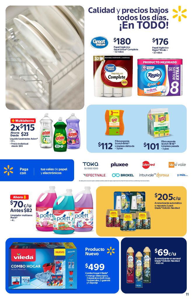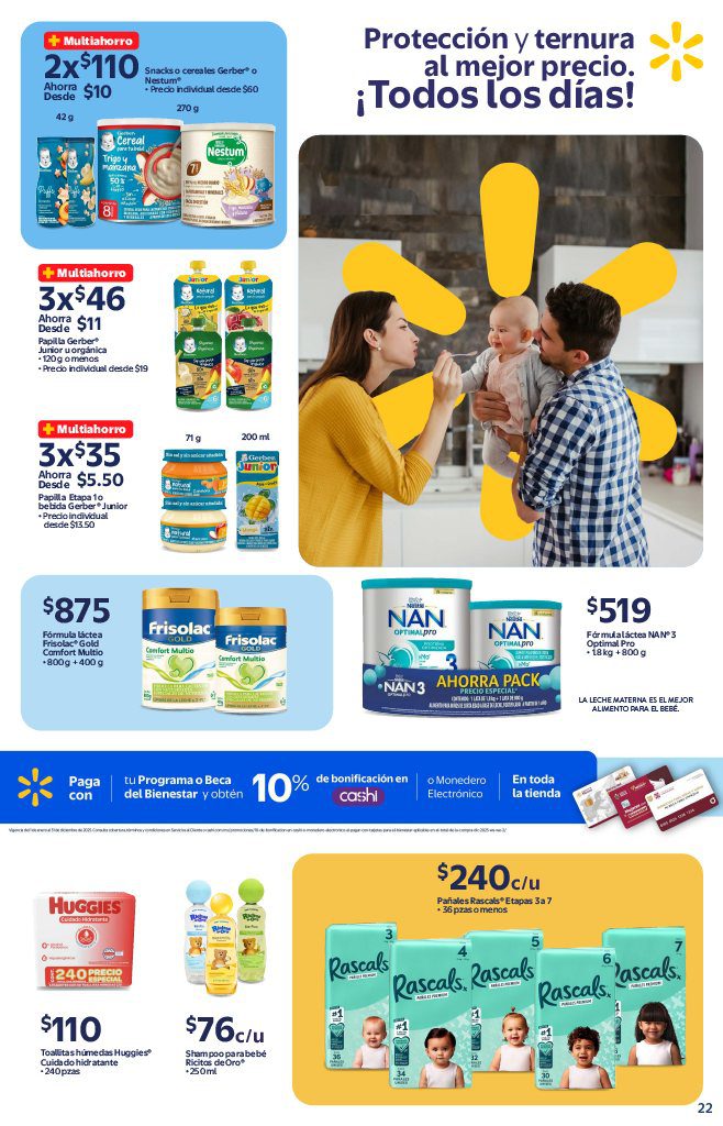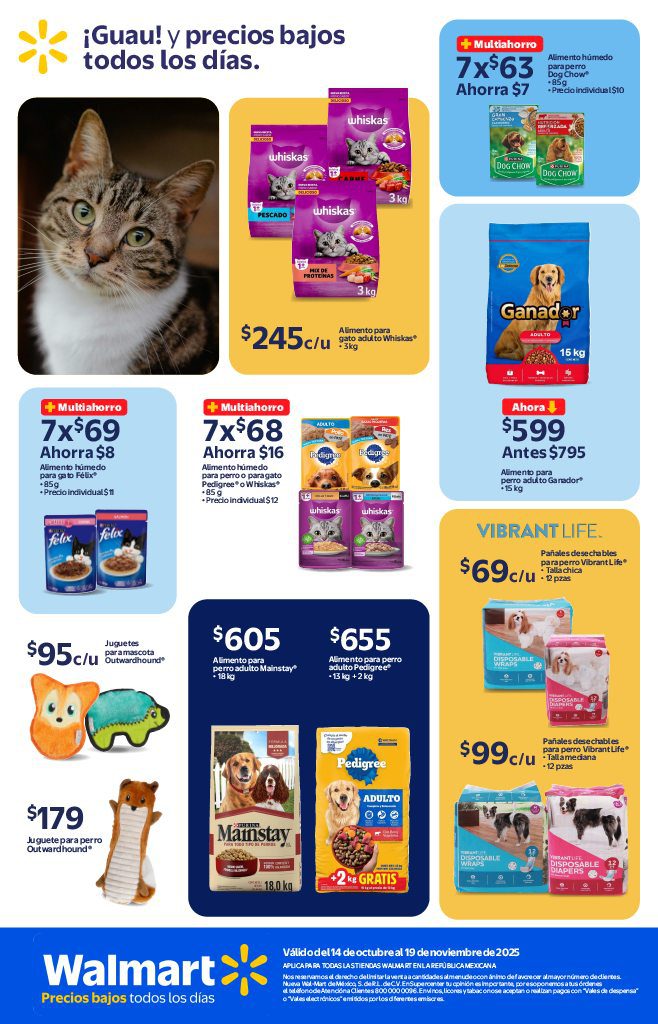 Las tiendas de autoservicio Walmart publicaron su folleto Precios Bajos todos los Días, que contiene sus ofertas válidas del 14 de octubre al 19 de noviembre de 2025, en el que encontrarás Precios Bajos (Precios especiales todos los días), Multiahorros (Ahorros en la compra de 2 o más unidades), Rebajas (Descuentos especiales), un 10% de Bonificación en Cashi o Monedero electrónico si pagas con tu Programa o Beca del Bienestar, un 20% de Bonificación (en productos participantes) si pagas con Cashi y hasta 20 Meses sin intereses con tarjetas participantes; las ofertas aplican en productos seleccionados, son válidas en sus sucursales físicas y en su tienda en línea walmart.com.mx (algunas ofertas son exclusivas de su sitio web). Aquí les dejo el folleto completo: