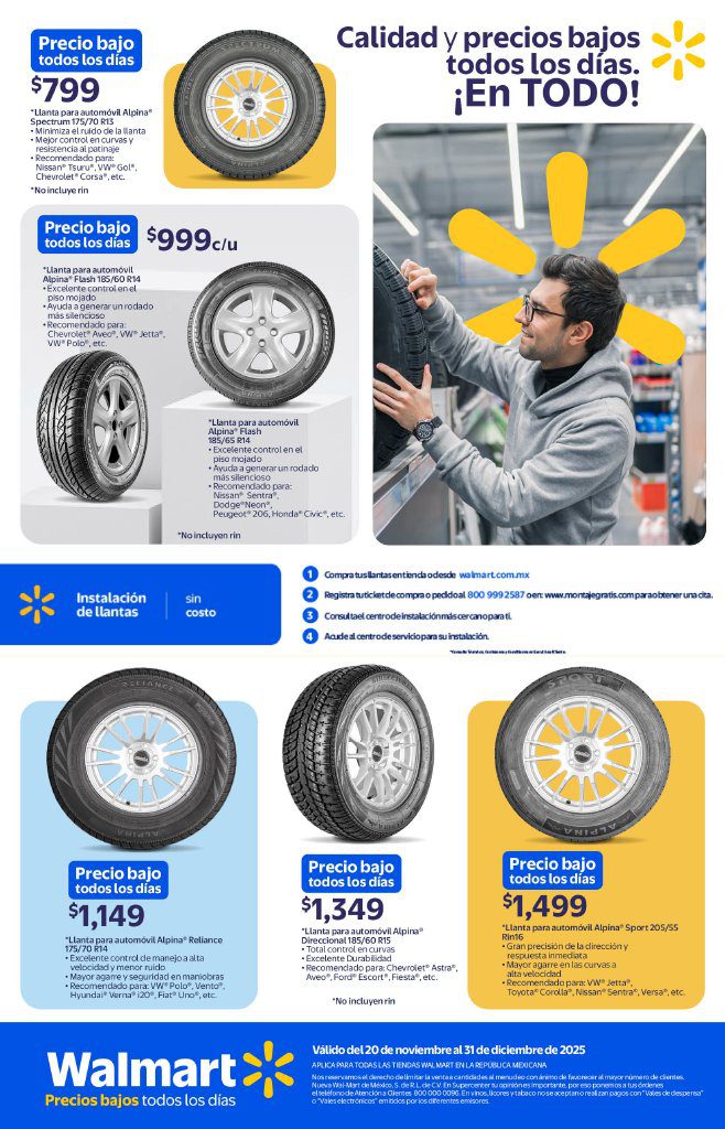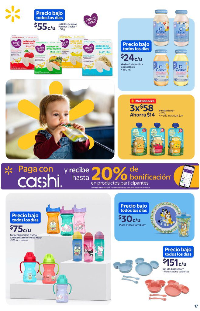 Las tiendas de autoservicio Walmart publicaron su folleto Precios Bajos todos los Días, que contiene sus ofertas válidas del 20 de noviembre al 31 de diciembre de 2025, en el que encontrarás Precios Bajos (Precios especiales todos los días), Multiahorros (Ahorros en la compra de 2 o más unidades), un 10% de Bonificación en Cashi o Monedero electrónico si pagas con tu Programa o Beca del Bienestar, hasta un 20% de Bonificación (en productos participantes) si pagas con Cashi y 3 Meses sin intereses con tarjetas participantes; las ofertas aplican en productos seleccionados, son válidas en sus sucursales físicas y en su tienda en línea walmart.com.mx (algunas ofertas son exclusivas de su sitio web). Aquí les dejo el folleto completo: