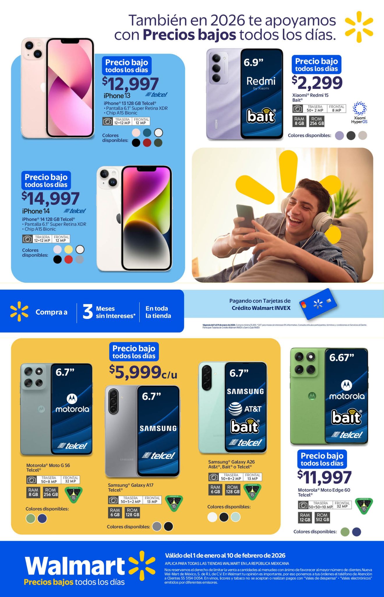 Las tiendas de autoservicio Walmart publicaron su folleto También en 2026 te Apoyamos con Precios Bajos Todos los Días, que contiene sus ofertas válidas del 01 de enero al 10 de febrero de 2026, en el que encontrarás Precios Bajos (Precios especiales todos los días), Multiahorros (Ahorros en la compra de 2 o más unidades), un 10% de Bonificación en Cashi o Monedero electrónico si pagas con tu Programa o Beca del Bienestar, hasta un 20% de Bonificación (en productos participantes) si pagas con Cashi y hasta 20 Meses sin intereses con tarjetas participantes; las ofertas aplican en productos seleccionados, son válidas en sus sucursales físicas y en su tienda en línea walmart.com.mx (algunas ofertas son exclusivas de su sitio web). Aquí les dejo el folleto completo: