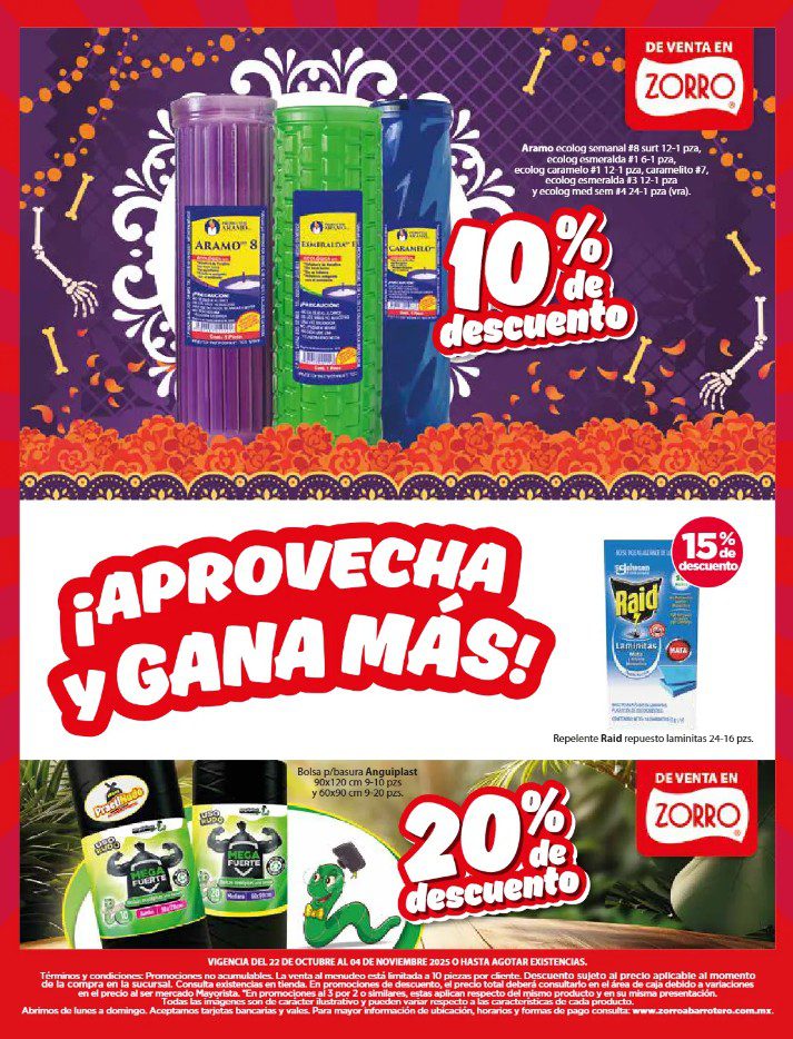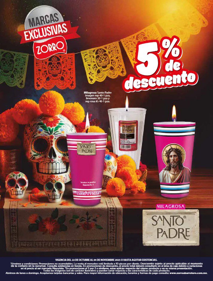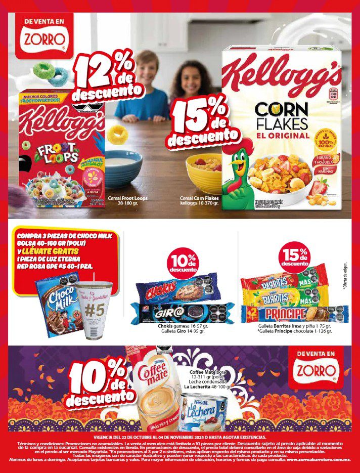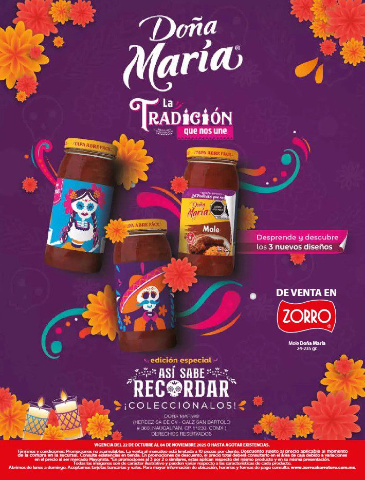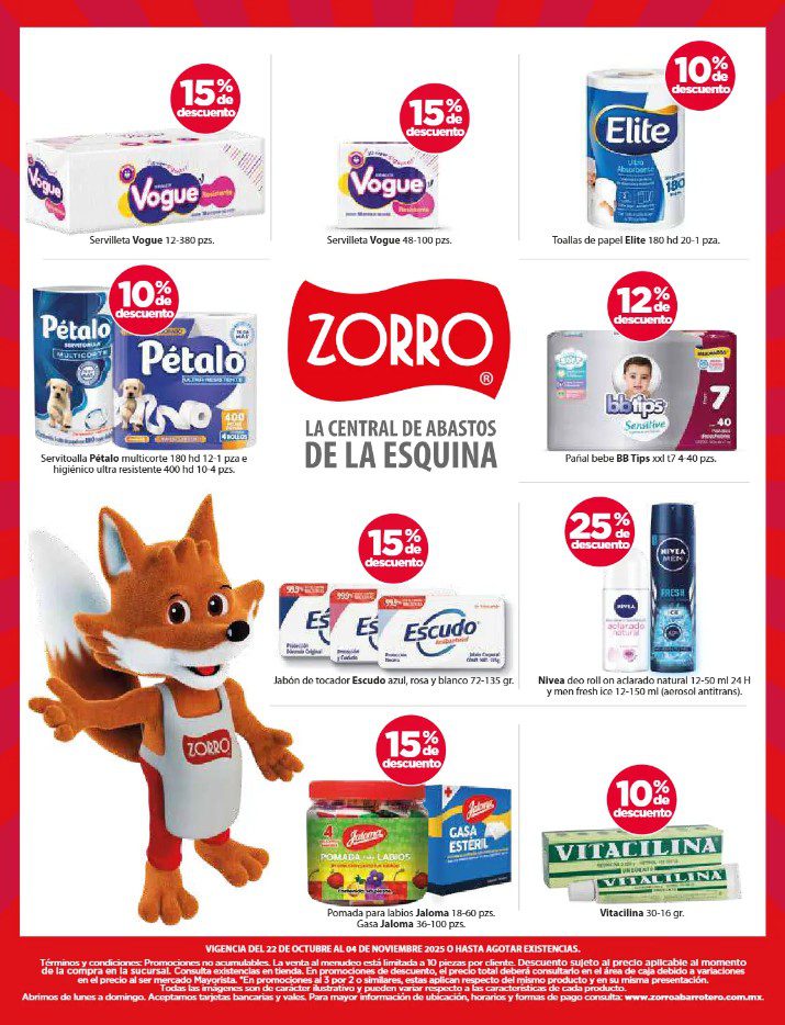 Apenas estoy viendo el folleto Nuestras Tradiciones, que el Zorro Abarrotero publicó y que contiene sus ofertas que estarán disponibles del 22 de octubre al 04 de noviembre de 2025, entre las que se encuentran 5×4, Al Tú por Tú, Marcas Exclusivas, Indispensables para tu Negocio, Producto Gratis en la compra de mercancía seleccionada, hasta un 30% de descuento y Precios especiales; las ofertas aplican en mercancía seleccionada. No es acumulable con otras promociones y aquí les dejo el folleto completo: