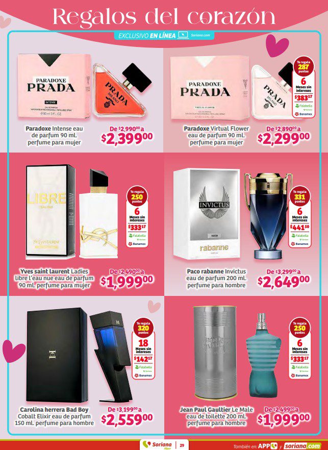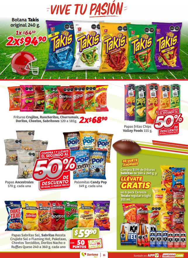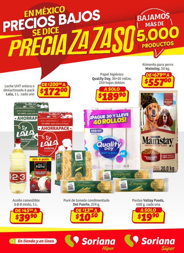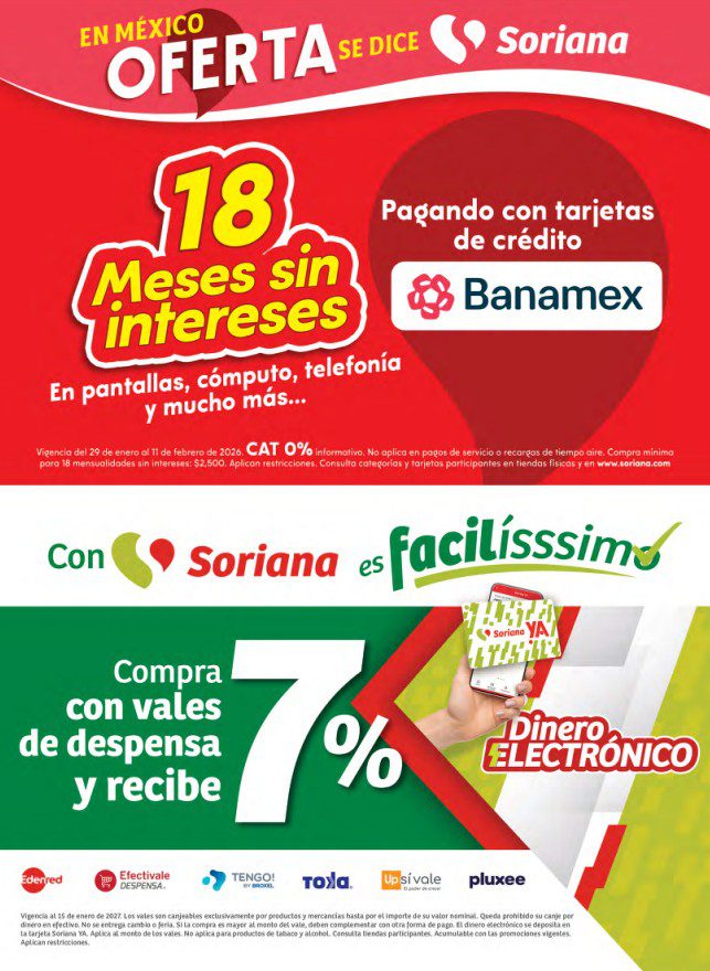 Ya salieron los folletos En México, Precios Bajos se dice Preciazazaso, Vive tu pasión por el Super Bowl, Regalos del Corazón por San Valentín, en México, Oferta se dice Soriana y Bebé Club de Soriana Híper, que contiene sus ofertas válidas del 29 de enero al 11 de febrero de 2026 o agotar existencias, y en el que encontrarás Preciazazasos, 3×2, 4×3 (el producto GRATIS será el de igual o menor precio), Beneficios con tu tarjeta Soriana Ya, en la compra de 1 te llevas el 2º con un 50% ó un 70% de descuento (en productos de igual o menor precio), Ahorros especiales en la compra de determinadas unidades, Pa’Quete Ahorres con Producto GRATIS en la compra de mercancía participante, hasta un 30% de descuento, Precios especiales y hasta 18 Meses sin intereses; las ofertas son válidas en artículos seleccionados y aplican en su tienda en línea soriana.com y en sus sucursales físicas del Valle de México (los precios y productos participantes pueden variar ligeramente en otras localidades).
