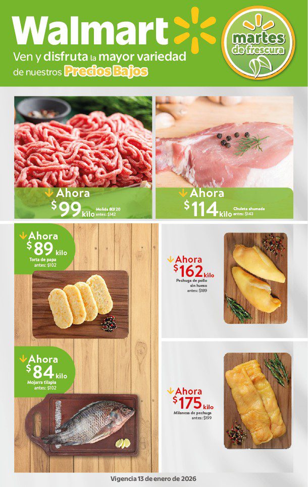 El Martes de Frescura Walmart de esta semana presenta las siguientes ofertas de frutas y verduras válidas a partir de mañana 13 de enero de 2026 en sucursales Walmart y también Walmart Express de la república mexicana.