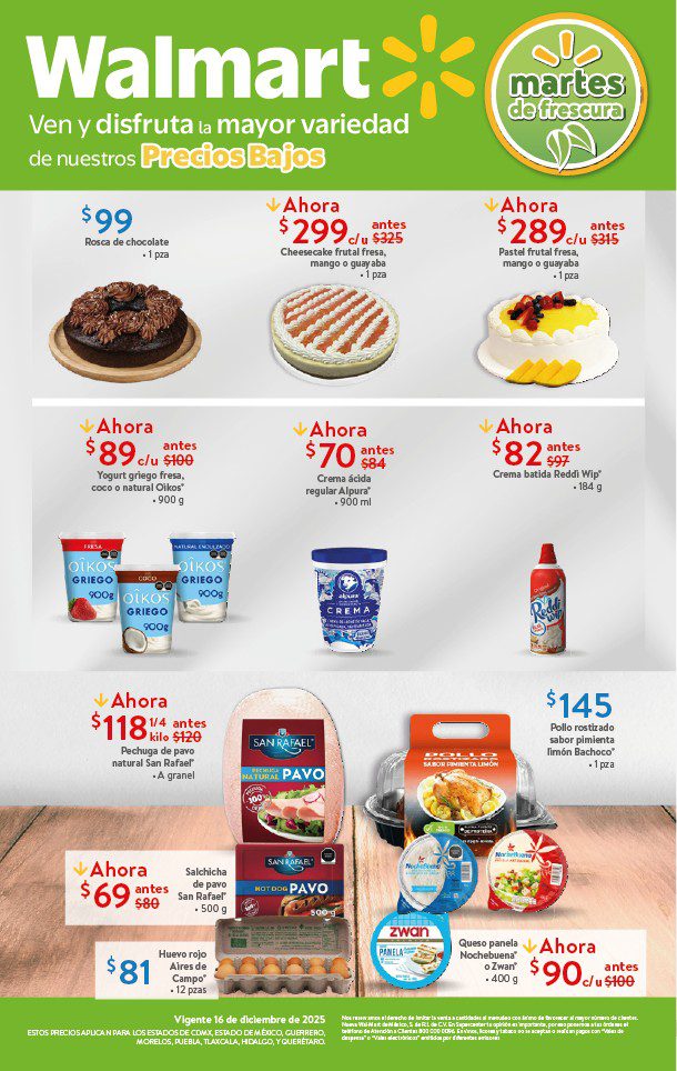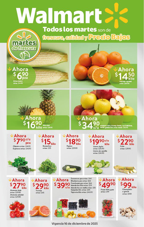 – Hasta ahora Walmart todavía no ha dado a conocer sus primeras ofertas del Martes de Frescura para mañana 16 de diciembre de 2025.