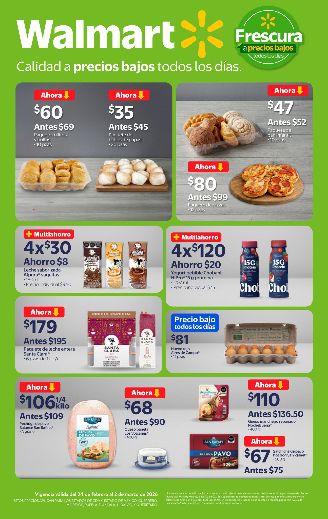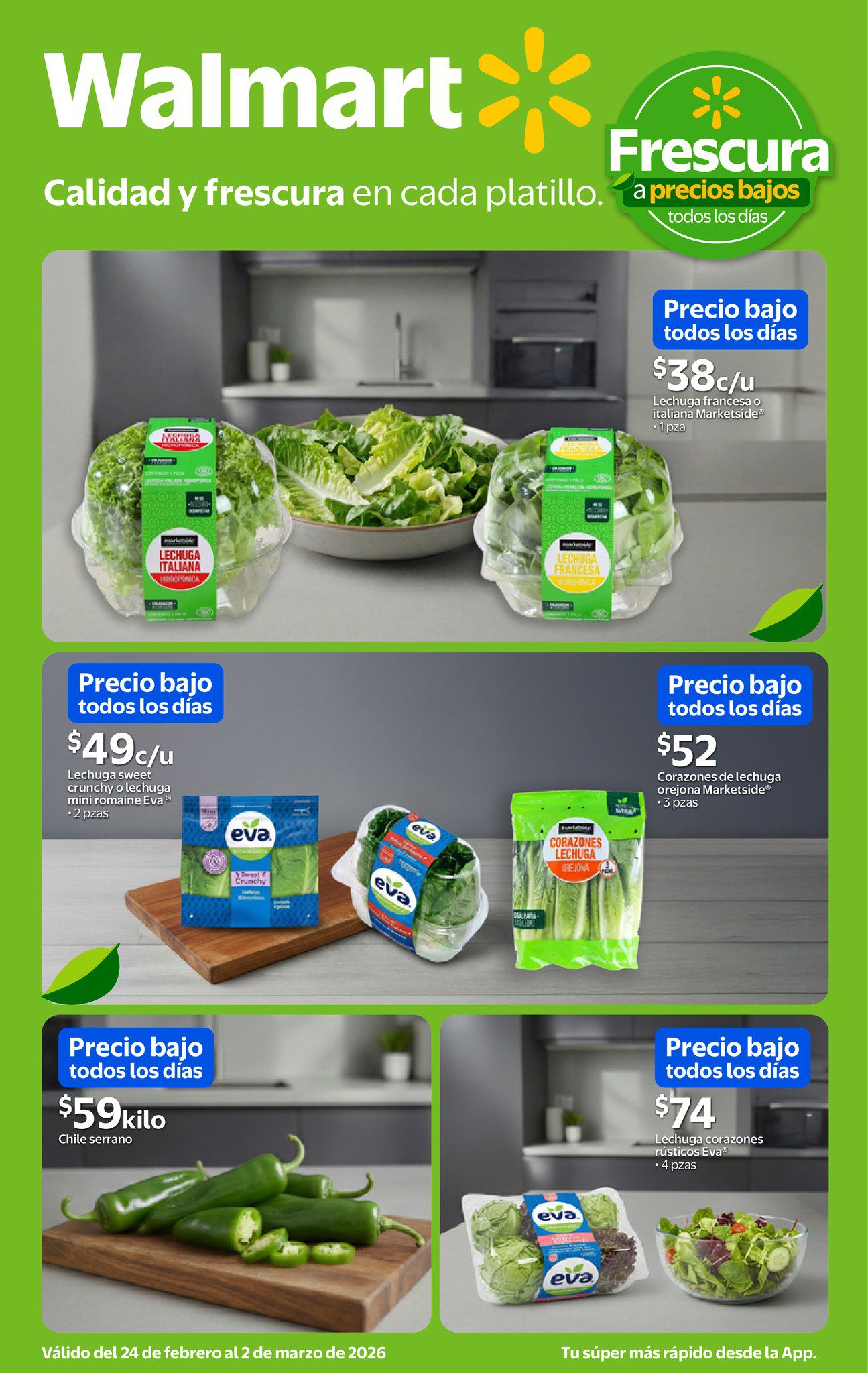 Las tiendas Walmart y su Martes de Frescura tendrán preparadas las siguientes ofertas de frutas y verduras del 24 de febrero al 02 de marzo de 2026 en tiendas participantes Walmart y también Walmart Express.