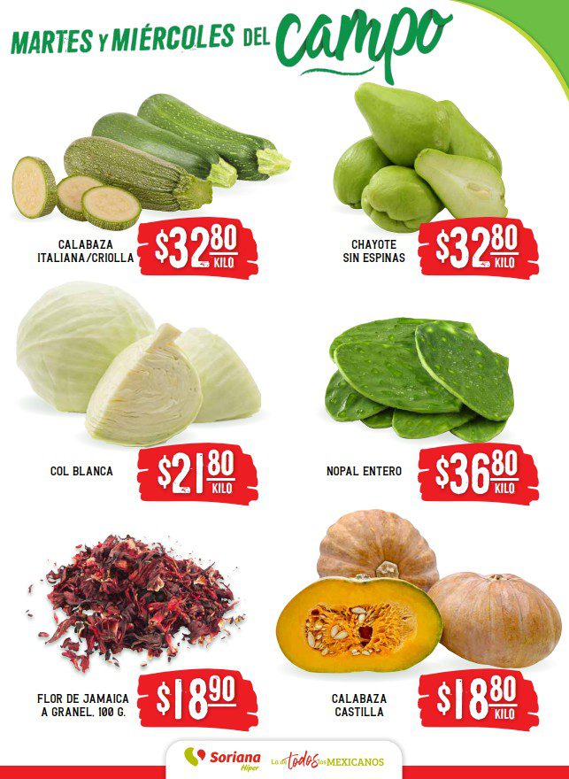 El Martes y Miércoles del Campo de Soriana tendrá preparadas las siguientes ofertas de frutas y verduras para esta semana válidas únicamente los días 14 y 15 de octubre de 2025 en tiendas Soriana participantes.