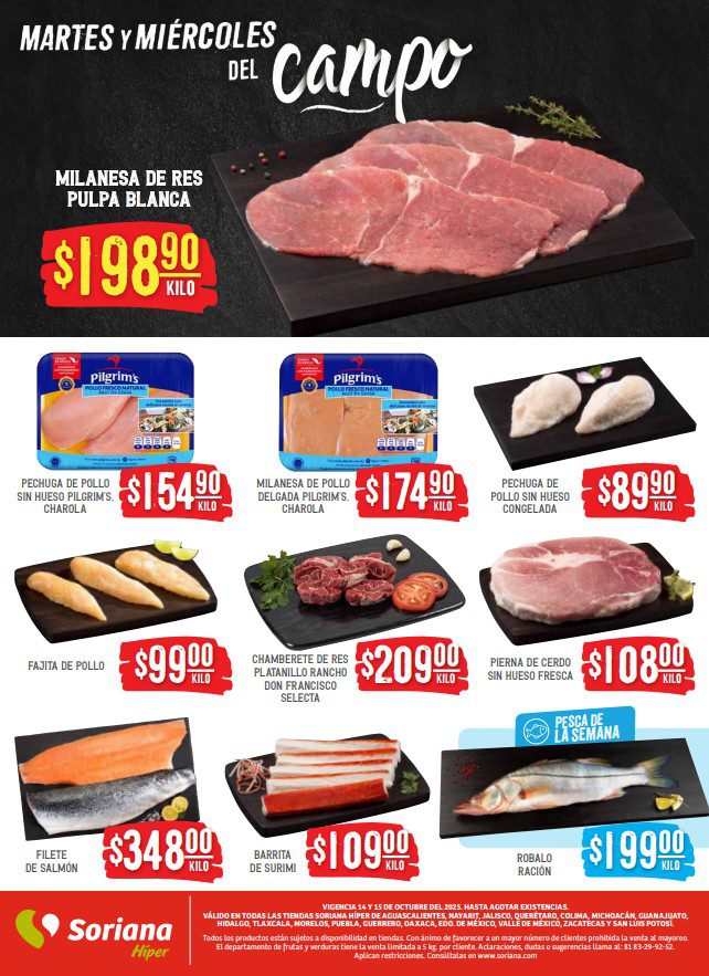 - Milanesa de Res Pulpa blanca a $198.90 el kilo.