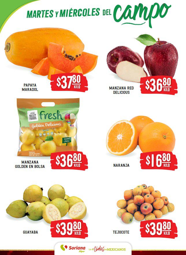 Soriana y su Martes y Miércoles del Campo tendrá preparadas las siguientes ofertas de frutas y verduras válidas para los días 16 y 17 de diciembre de 2025 en sucursales Soriana participantes a nivel nacional.