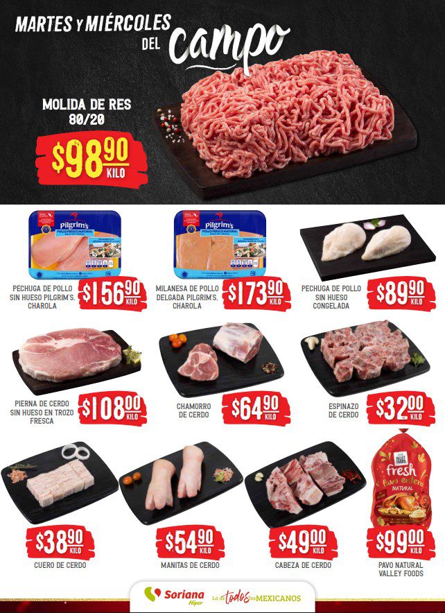 - Molida de Res 80/20 a $98.90 el kilo.