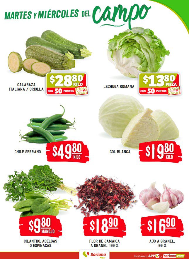 - Lechuga Romana a $13.80 la pieza con 50 Puntos Soriana Ya.