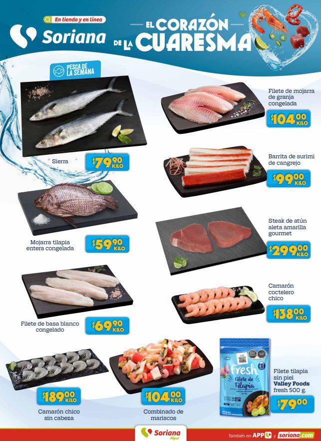 - Filete Tilapia sin piel Valley Foods Fresh a $79.00 el empaque de 500 g.