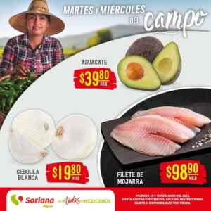 Soriana y su Martes y Miércoles del Campo dan a conocer las siguientes ofertas de frutas y verduras para esta semana válidas los días martes 18 y miércoles 19 de marzo de 2025 en sucursales participantes.