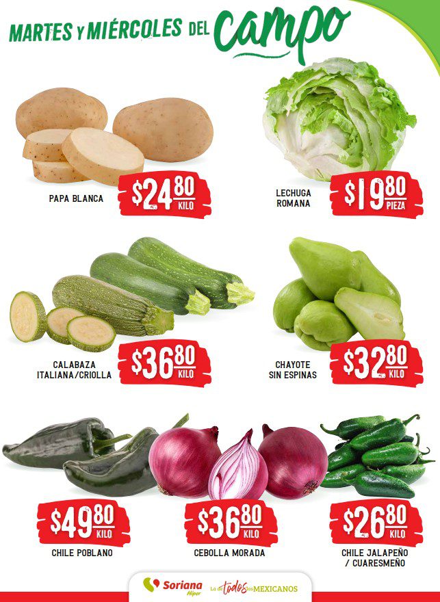 Soriana y su Martes y Miércoles del Campo presenta las siguientes ofertas de frutas y verduras con precios válidos este 18 y 19 de noviembre de 2025 en sucursales participantes Soriana.