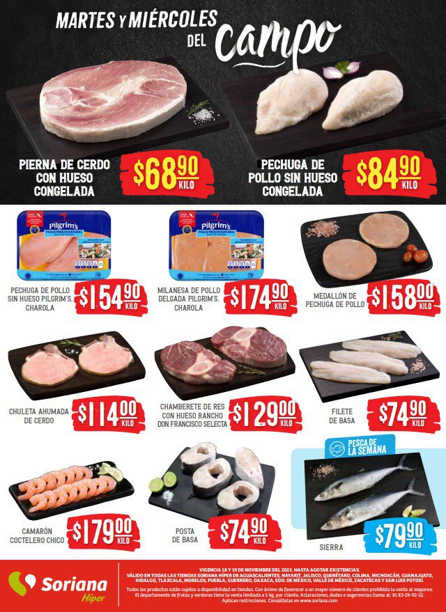 Ofertas Martes y Miércoles del Campo 18 y 19 de noviembre en Soriana Coapa CDMX (en otras sucursales estos precios pueden variar):