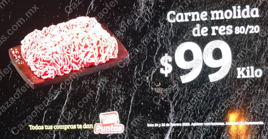 - Carne molida de res 80/20: $99 el kilo.