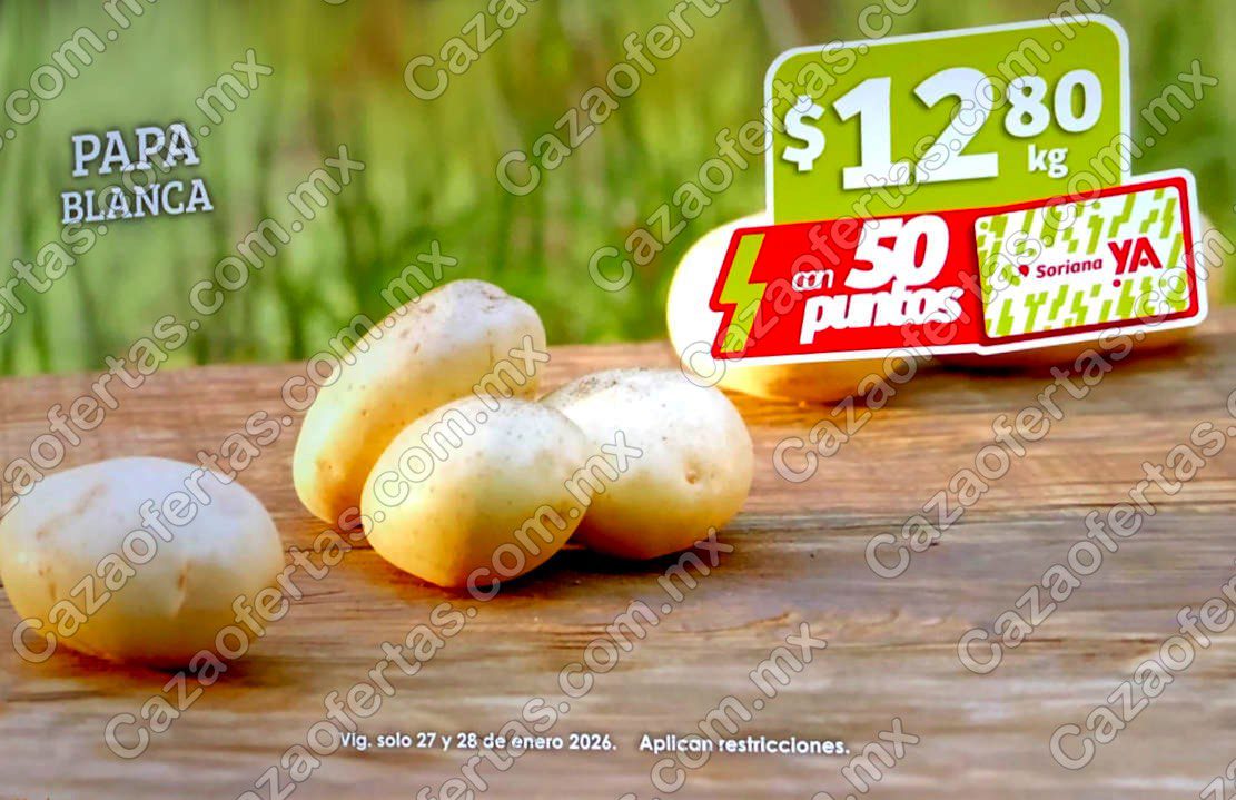 - Papa blanca: $12.80 el kilo usando 50 puntos Soriana Ya!