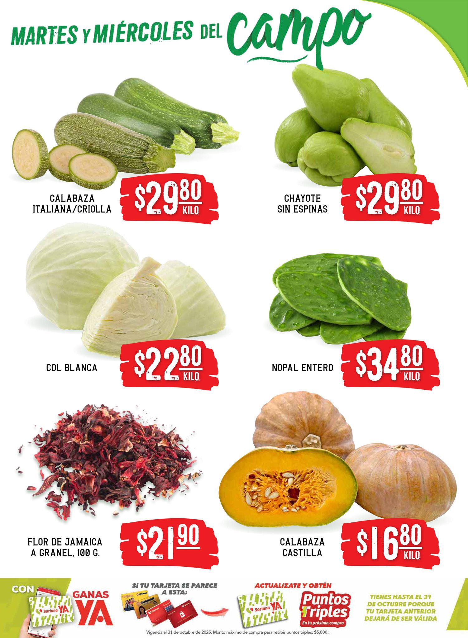 El Martes y Miércoles del Campo de Soriana presenta las siguientes ofertas de frutas y verduras para esta semana válidas para estos días 28 y 29 de octubre de 2025 en sucursales participantes Soriana.