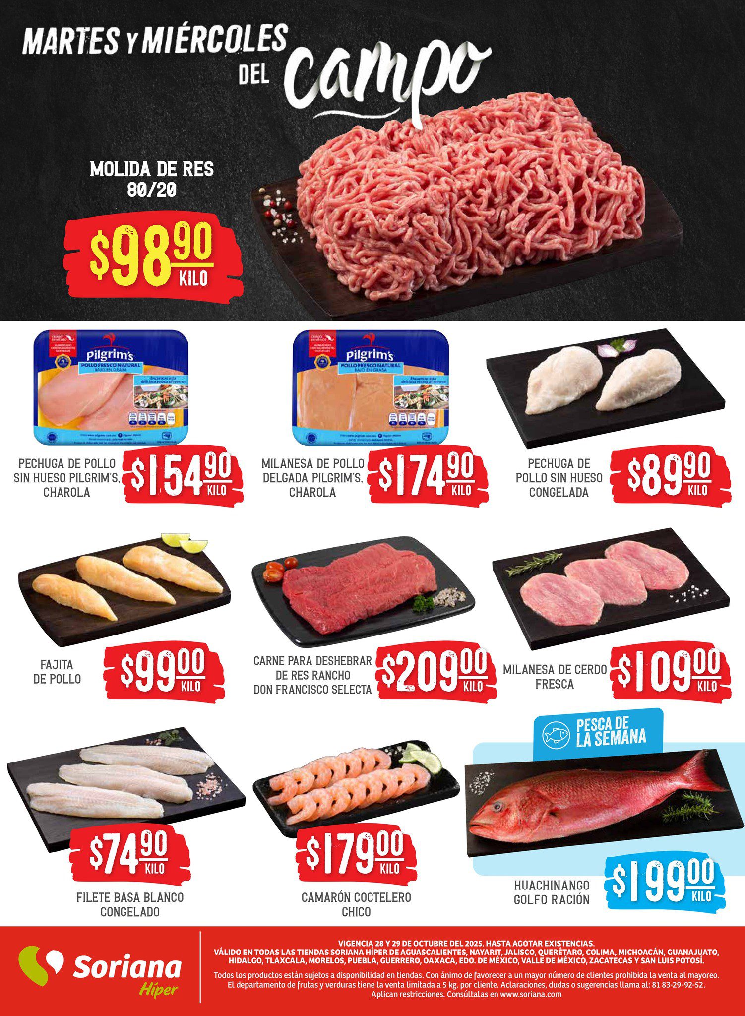 Ofertas Martes y Miércoles del Campo 28 y 29 de octubre en Soriana Coapa CDMX (en otras sucursales estos precios pueden variar):