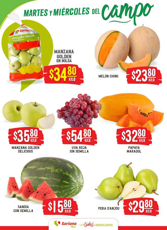 El Martes y Miércoles del Campo de Soriana presenta las siguientes ofertas dew frutas y verduras válidas para este 4 y 5 de noviembre de 2025 en sucursales participante en todo el país.