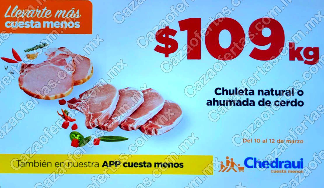 - Chuleta natural de cerdo: $109 el kilo.