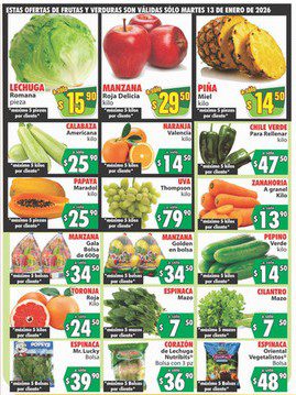 Acaba de salir el folleto ofertas en Frutas y Verduras de Casa Ley que están disponibles hoy martes 13 y mañana miércoles 14 de enero de 2026, algunas de sus ofertas son estas: