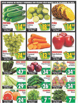 Acaba de salir el folleto ofertas en Frutas y Verduras de Casa Ley que están disponibles hoy martes 16 y mañana miércoles 17 de diciembre de 2025, algunas de sus ofertas son estas: