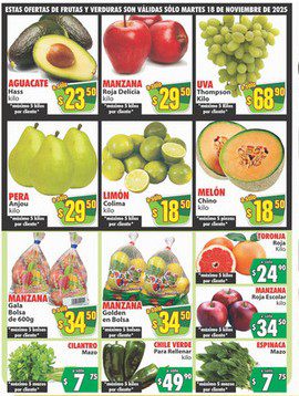 Acaba de salir el folleto ofertas en Frutas y Verduras de Casa Ley que están disponibles hoy martes 11 y mañana miércoles 12 de noviembre de 2025, algunas de sus ofertas son estas:
