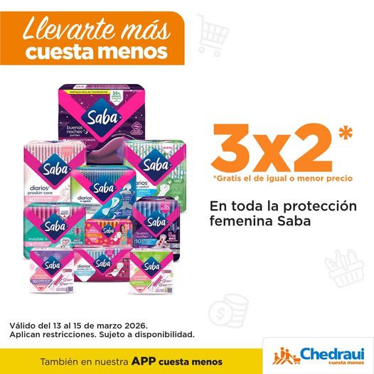 Desde el viernes 13 y hasta el lunes 16 de marzo de 2026, en las tiendas de autoservicio Chedraui, estarán sus promociones Llevarte más cuesta Menos, La Cuaresma más Fresca y Expertos de la Parrilla, con la que encontrarás un 3×2 o 4×3 (en producto Gratis será el de igual o menor precio), hasta un 20% de descuento, hasta un 30% de Bonificación en monedero MiChedraui y Precios especiales; la promoción aplica en productos seleccionados y es válida en su tienda en línea www.chedraui.com.mx y en sus sucursales físicas.