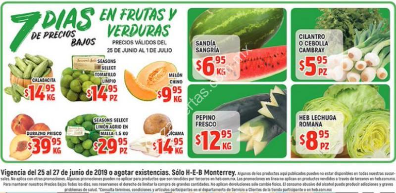 Ya tenemos el folleto de los 7 Días de Precios Bajos en Frutas y Verduras que HEB estará ofreciendo del 25 de junio al 01 de julio de 2019 ó agotar existencias: