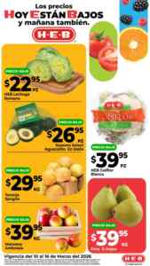 Estoy viendo el folleto “7 Días de Precios Bajos” con las ofertas que HEB está ofreciendo del 10 al 16 de marzo de 2026 o agotar existencias: