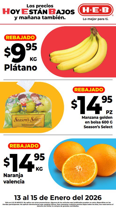 Estoy viendo el folleto “7 Días de Precios Bajos” con las ofertas que HEB está ofreciendo del 13 al 19 de enero de 2026 o agotar existencias: