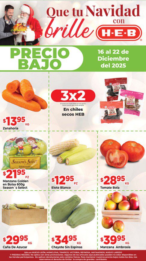 Estoy viendo el folleto “7 Días de Precios Bajos” con las ofertas que HEB está ofreciendo del 16 al 22 de diciembre de 2025 o agotar existencias: