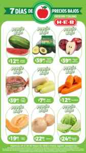 Estoy viendo el folleto “7 Días de Precios Bajos” con las ofertas que HEB está ofreciendo del 20 al 26 de mayo de 2025 o agotar existencias: