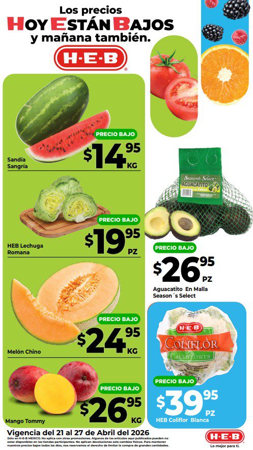 - Aguacate a $39.95 el kilo (hasta el 23 de abril)