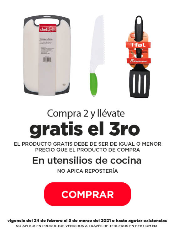 Las tiendas de autoservicio HEB publicaron sus ofertas válidas del 24 de febrero al 03 de marzo del 2021 o hasta agotar existencias, entre las que encontrarás en la compra de 1 te llevas GRATIS el 2º de igual o menor precio, Segundo a Mitad de precio, en la compra de 2, recibes GRATIS el 3º de igual o menor precio, hasta un 30% de ahorro y Precios especiales; la promoción es válida en artículos seleccionados y aplica solo en su tienda en línea heb.com.mx