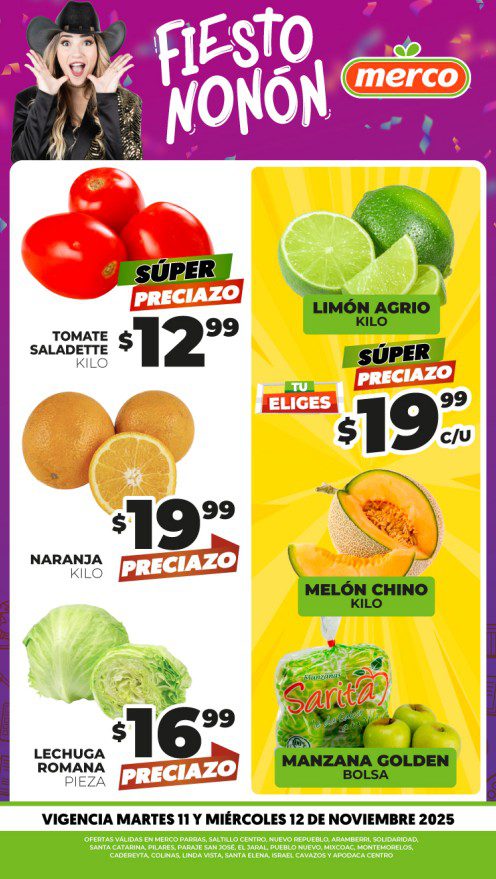 Hace un momento vi el folleto Fiestononón con las ofertas en Frutas y Verduras que Merco está ofreciendo del 11 al 13 de noviembre de 2025:
