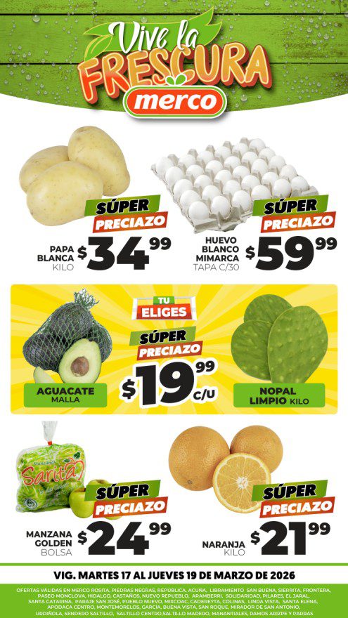 Hace un momento vi el folleto Vive la Frescura con las ofertas en Frutas y Verduras que Merco está ofreciendo del 17 al 19 de marzo de 2026:
