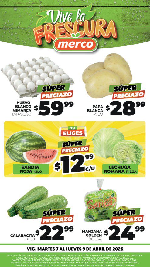Hace un momento vi el folleto Vive la Frescura con las ofertas en Frutas y Verduras que Merco está ofreciendo del 07 al 09 de abril de 2026: