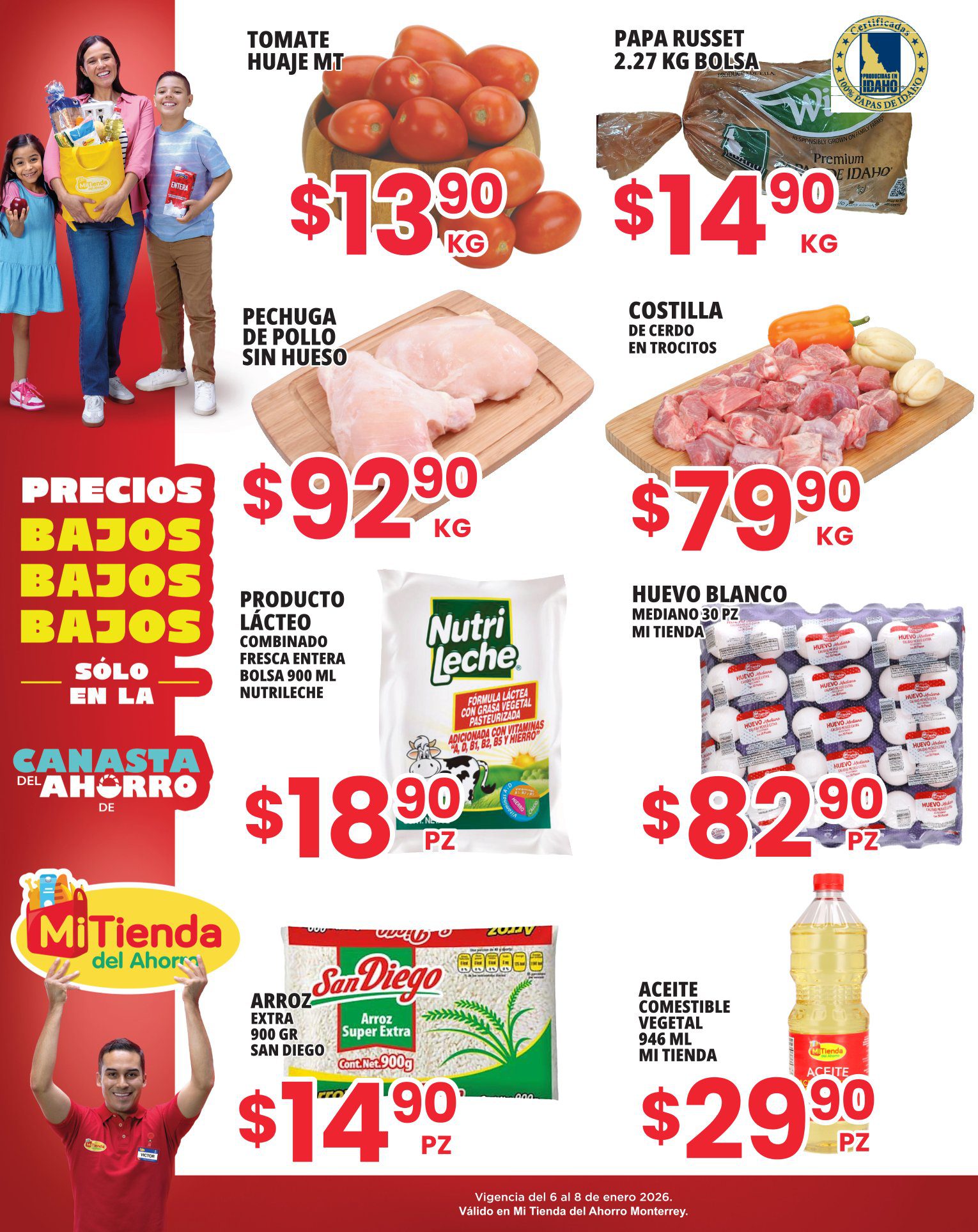 Acabo de ver el folleto Precios Bajos, solo en la Canasta del Ahorro, que Mi Tienda del Ahorro publicó, con sus ofertas en Frutas, Verduras y Carnes que están disponibles del 06 al 08 de enero de 2026 o hasta agotar existencias, puedes realizar tus compras en su tienda en línea mitienda.mx: