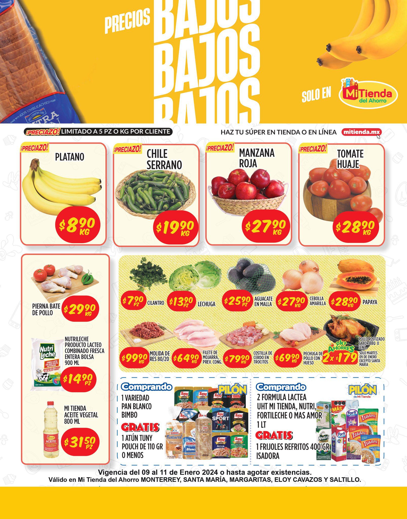 Acabo de ver el folleto « Precios Bajos, Bajos, Bajos” que Mi Tienda del Ahorro publicó, con sus ofertas en Frutas, Verduras y Carnes que están disponibles del 09 al 11 de enero de 2024 o hasta agotar existencias, puedes realizar tus compras en su tienda en línea mitienda.mx: