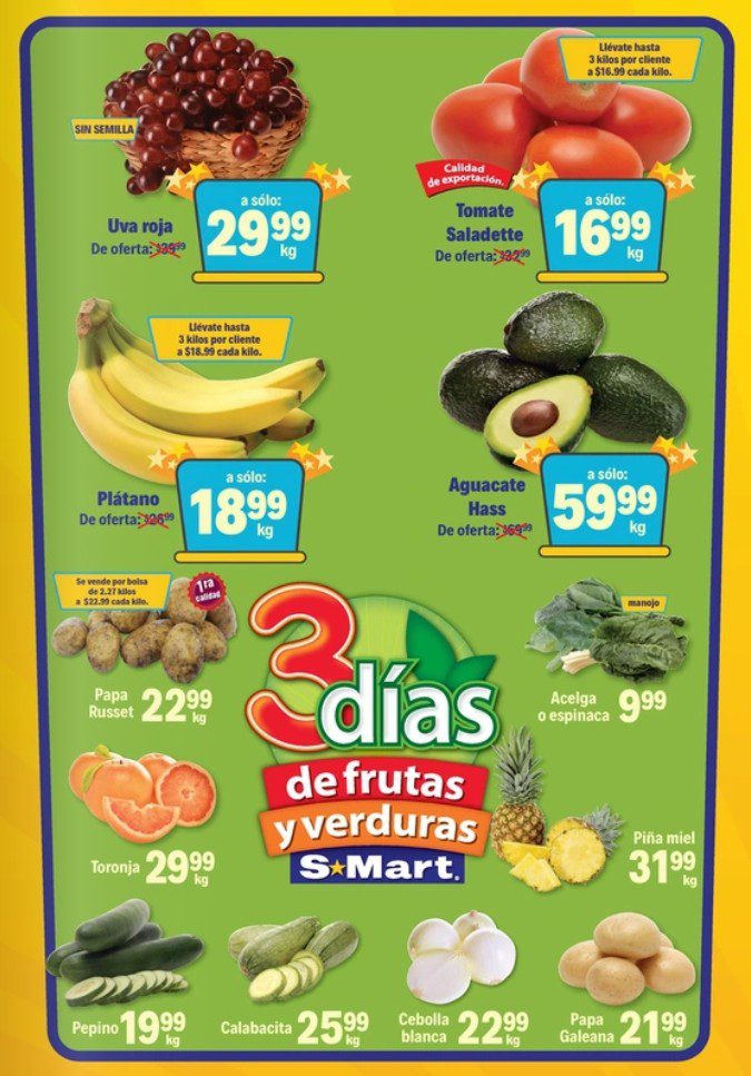 Ya salió el folleto “3 Días de Frutas y Verduras”, con las ofertas que S-Mart está ofreciendo del 21 al 23 de octubre de 2025 o hasta agotar existencias: